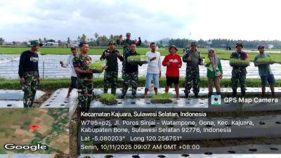 BONE – Komandan Koramil (Danramil) 1407-18/Kajuara, Lettu Inf Syahruddin, bersama anggota menghadiri kegiatan tanam perdana…