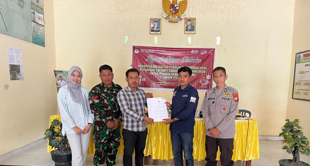 BONE – Babinsa Koramil 1407-12/Cina Koptu Abustan hadiri rapat pleno terbuka rekapitulasi Daftar Pemilih sementara Hasil perbaikan (DPSHP) pemilihan serentak 2024 bertempat di Sekretariat PPS Desa Cinennnug, Kec. Cina, Kab. Bone. Kamis (12/09/24)