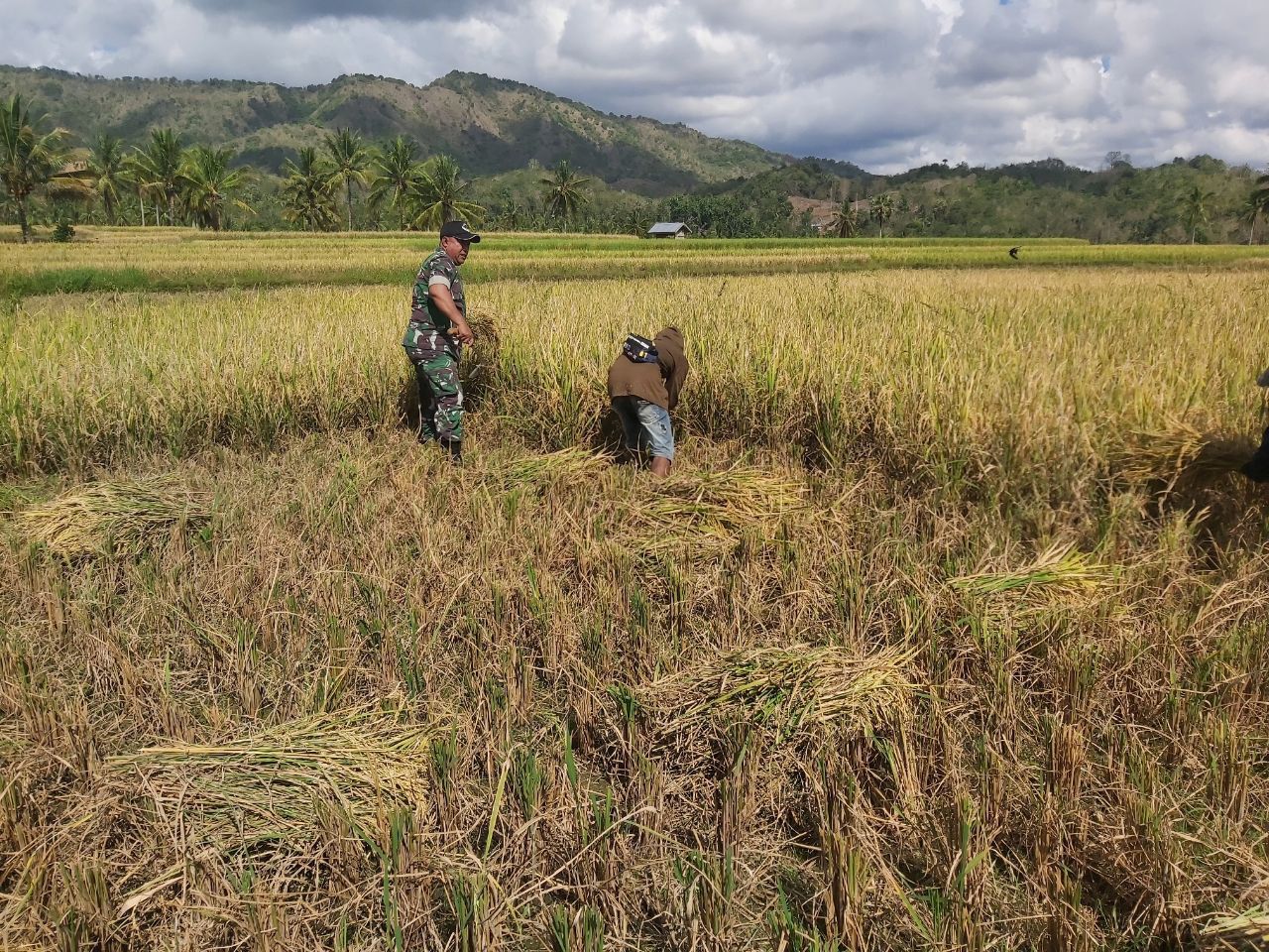 Dalam suasana penuh kebersamaan, Babinsa bersama para petani tampak bahu-membahu memanen padi yang telah menguning. Kegiatan ini bukan hanya sekadar panen, tetapi juga menjadi simbol eratnya hubungan antara TNI dan masyarakat dalam mendukung ketahanan pangan di wilayah.