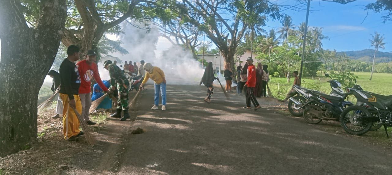 Kegiatan ini meliputi pembersihan sampah, daun kering, dan material lain yang mengganggu kebersihan jalan. Babinsa hadir langsung untuk memimpin, membantu, serta memotivasi warga agar selalu peduli terhadap kebersihan lingkungan sekitar.