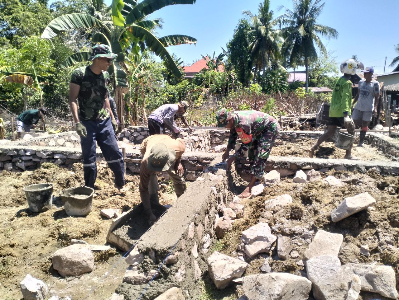 BONE – Babinsa Koramil 15/Mare Kodim 1407/Bone Serda Nisradi laksanakan karya bakti membantu pembuatan pondasi rumah milik warga di Dusun Sabballoa Desa Tellu Boccoe , Kec. Mare, Kab. Bone. Minggu (26/10/25).