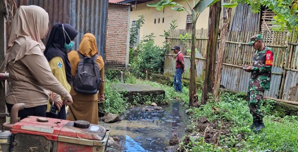 BONE – Babinsa Koramil 1407-19/Kahu Kopda Mursalim melaksanakan pendampingan percepatan Sanitasi Total Berbasis Masyarakat (STBM) oleh tenaga kesehatan puskesmas Kahu di Desa Hulo, Kec. Kahu, Kab. Bone.