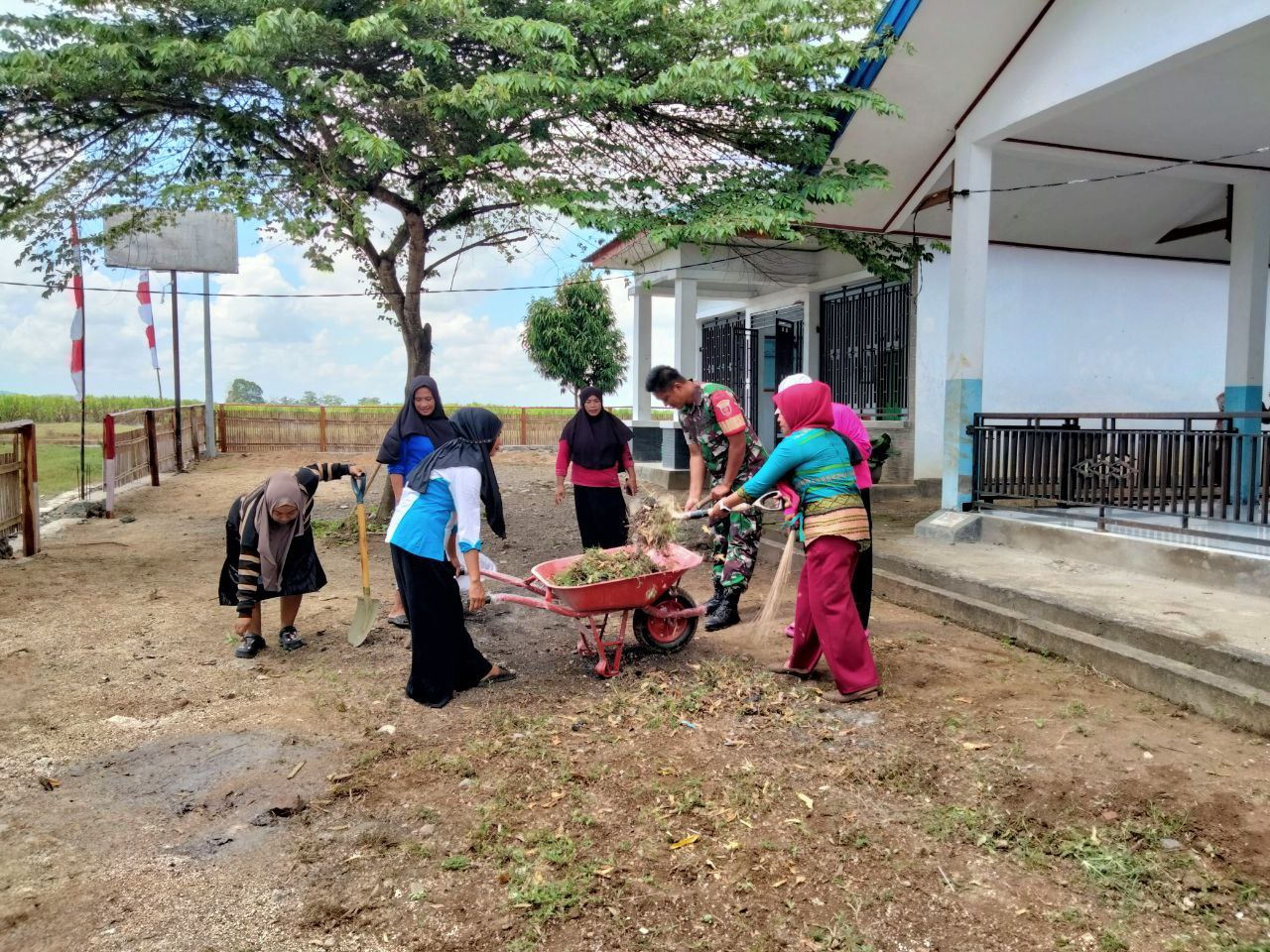 Babinsa Laburasseng Koramil 14/Libureng Bersama Ibu – Ibu PKK Kerja Bakti Bersihkan Halaman Posyandu