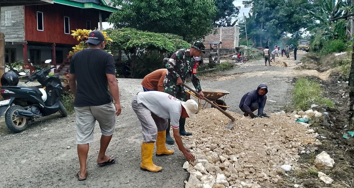 “Kami bersama warga bergotong royong memperbaiki jalan agar akses transportasi menjadi lebih lancar dan aman. Ini juga sebagai bentuk kebersamaan antara TNI dan masyarakat,” ujarnya.