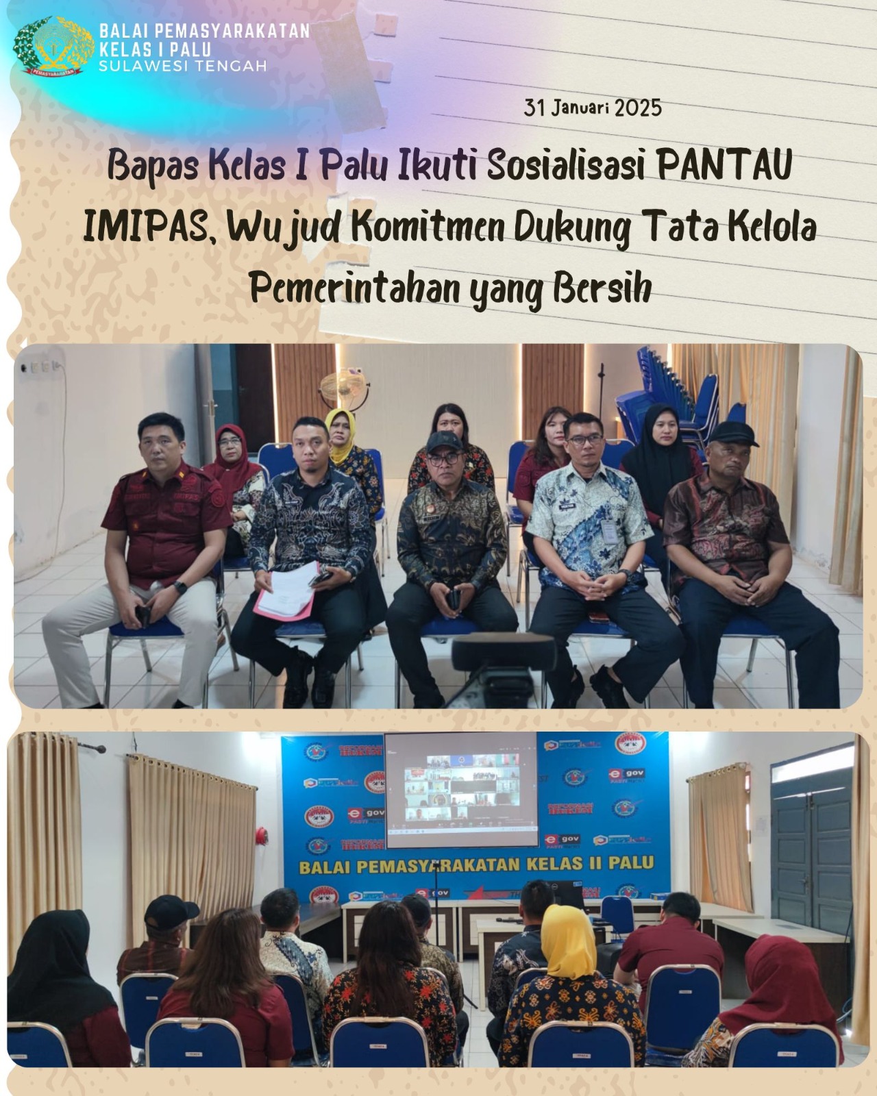 Sosialisasi PANTAU IMIPAS ini merupakan wujud komitmen Bapas Kelas I Palu dalam mendukung tata kelola pemerintahan yang bersih dan transparan. Dengan adanya sistem pengaduan yang terpadu, diharapkan dapat meminimalisir potensi penyimpangan dan meningkatkan kualitas pelayanan publik di lingkungan Kementerian Imigrasi dan Pemasyarakatan.