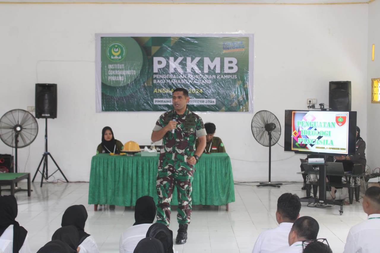 Pinrang_ Komandan Kodim 1404/Pinrang Letkol Inf Abdullah Mahua, SHI., M.M., memberikan materi Wawasan Kebangsaan dan Kesadaran Bela Negara kepada Mahasiswa baru Universitas Institut Cokroaminoto Pinrang tahun Akademik 2024 – 2025, bertempat di Aula Kampus Cokroaminoto Kab. Pinrang, Selasa (10/09/2024).