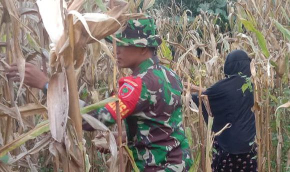 Bone – Babinsa Koramil 1407-19/Kahu Serda Agussalim dampingi warga yang sedang melaksanakan panen jagung di wilayah binaan Desa Mattoanging, Kec. Kahu, Kab. Bone. Selasa (17/03/26).