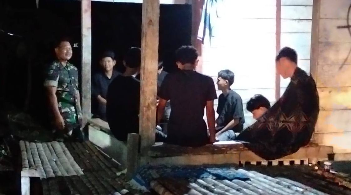 Babinsa juga berinteraksi dengan warga yang masih beraktivitas pada malam hari, memberikan imbauan agar tetap waspada dan menjaga keamanan lingkungan.