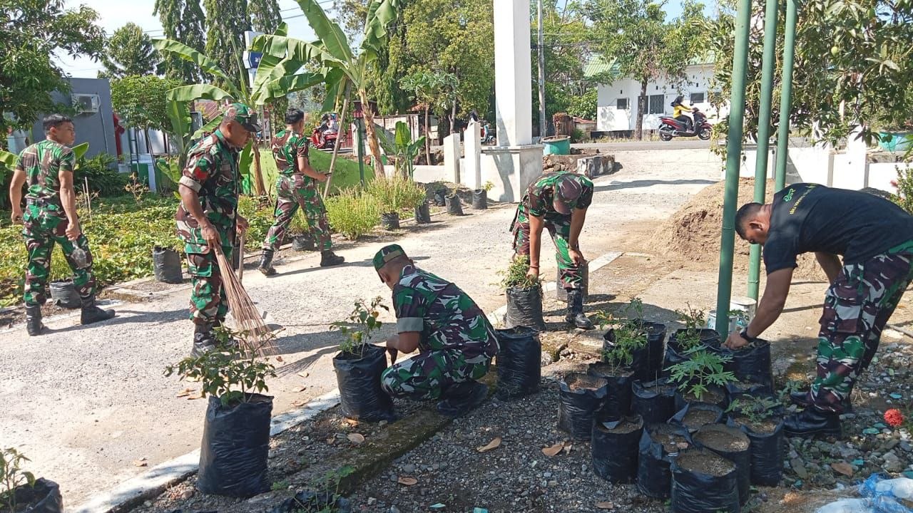 Pembersihan dilakukan secara menyeluruh, baik di bagian dalam maupun di luar kantor Koramil.